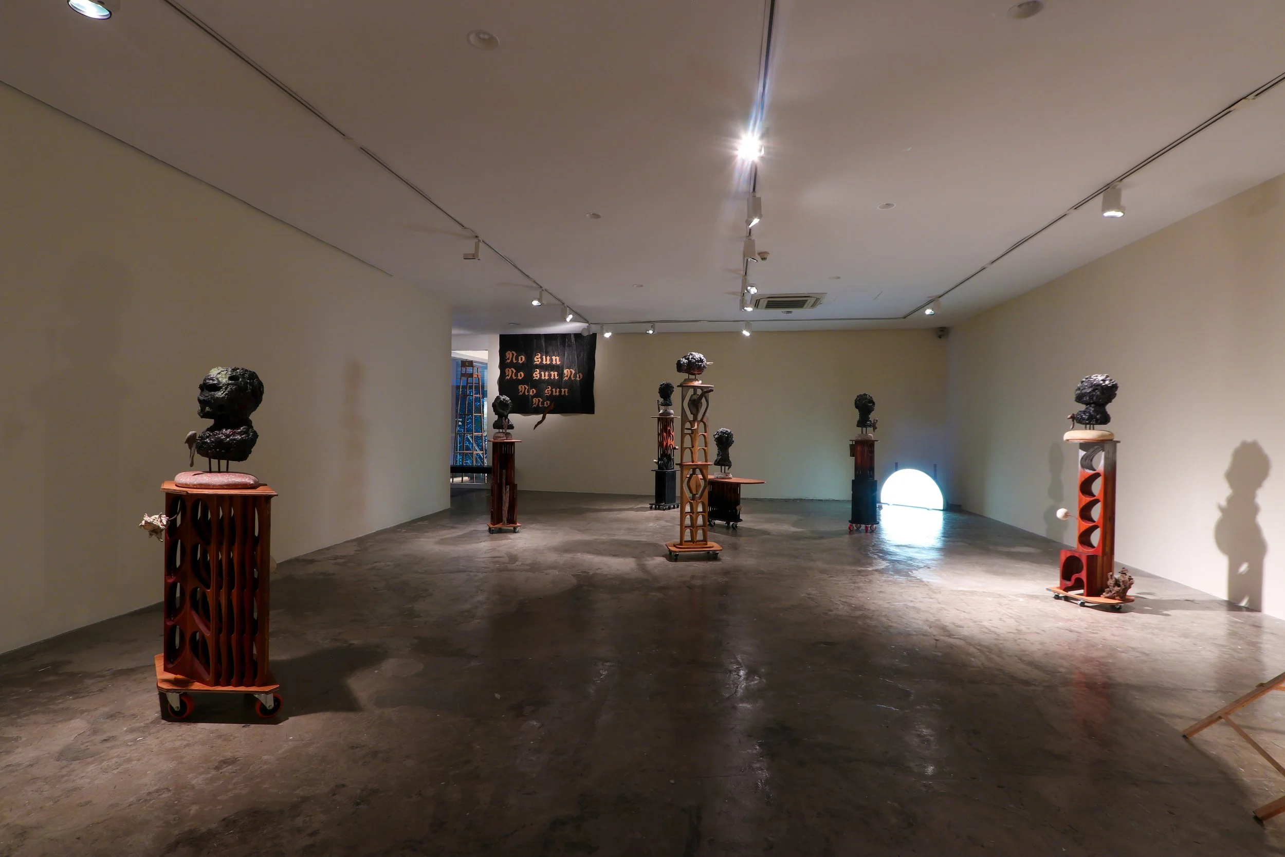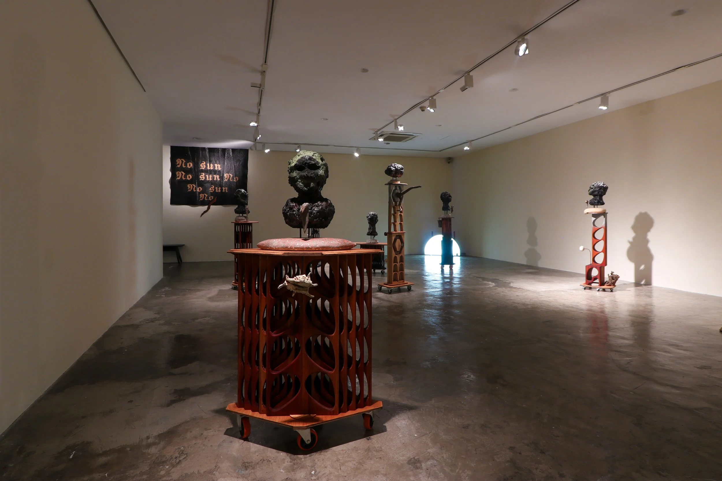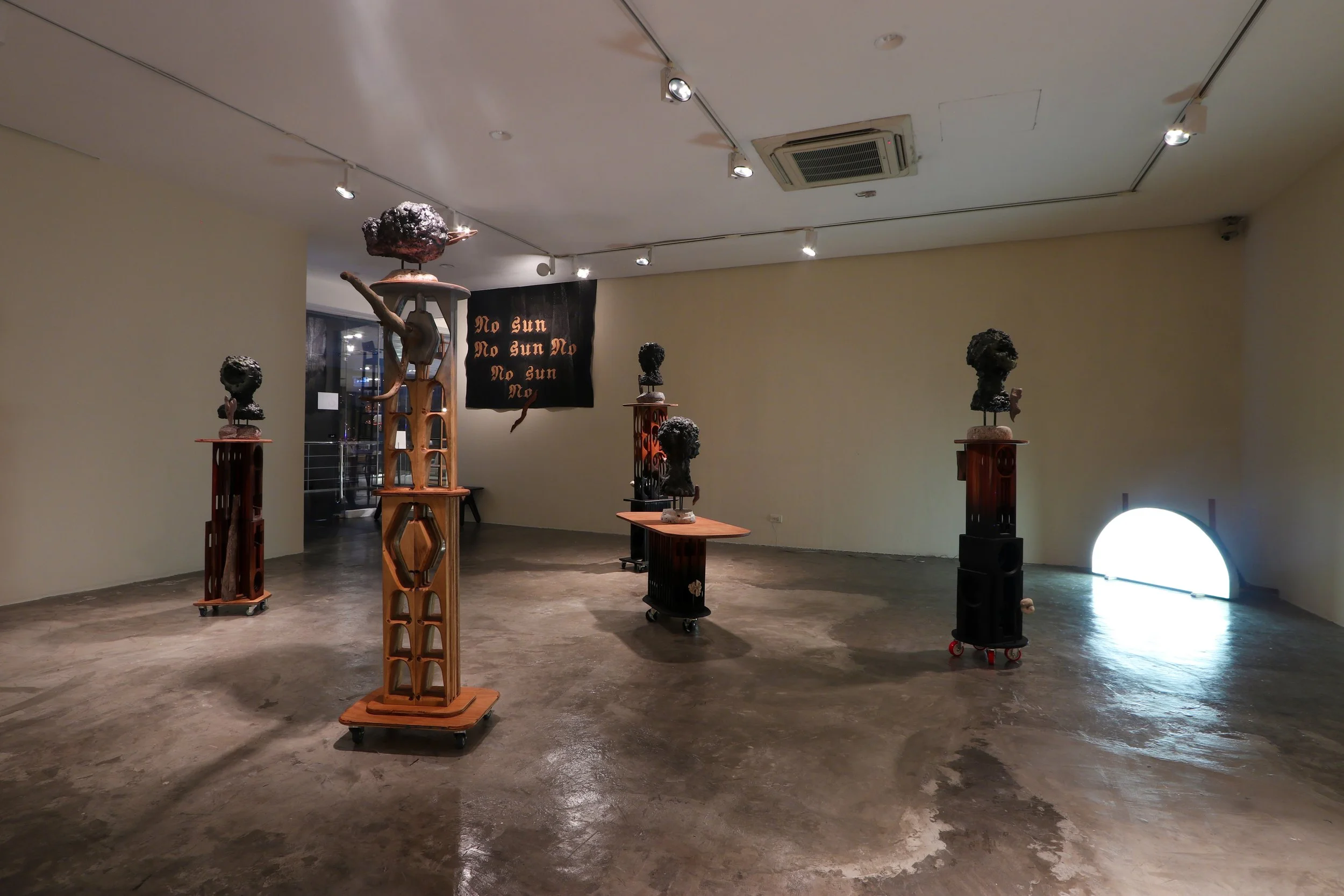 In Unusual Suns, Miguel Aquilizan and Costantino Zicarelli freely assume the roles of conjurers, but instead of spirit what appears before the viewer are the artists’ dreams of form and material. The objects, in shapes of their own invention, may very well be apparitions of a certain kind, ambiguous and implicit until recognisable figures pull one out of the wonder. The figures, although disfigured—a plaster bust or fiberglass arm—tether the exhibition to a world-to-be, one that might be built through the unlikely pairing of the tactical and the mystical. Such is at the intersection of the artists’ practices, a manifestation of shared tendencies: the processual collection of salvaged parts for later use, and a strong fascination for ritual. The viewer is invited to coexist.