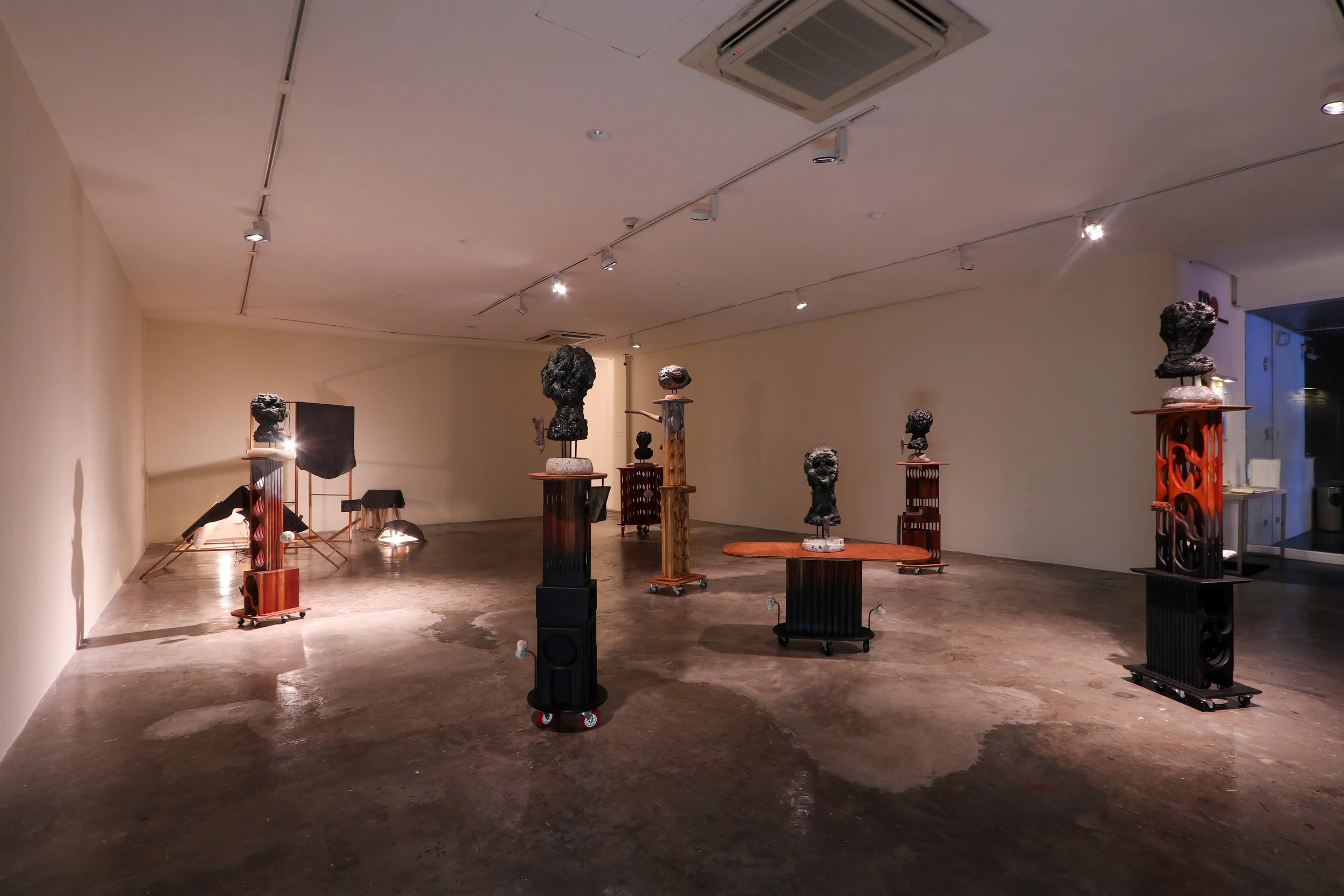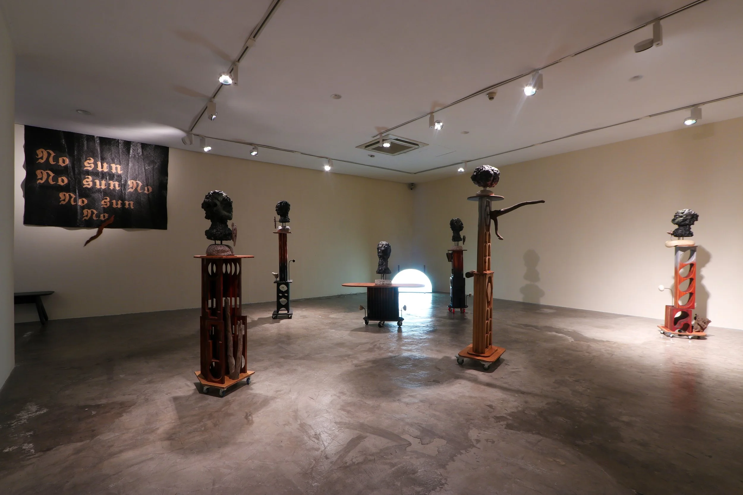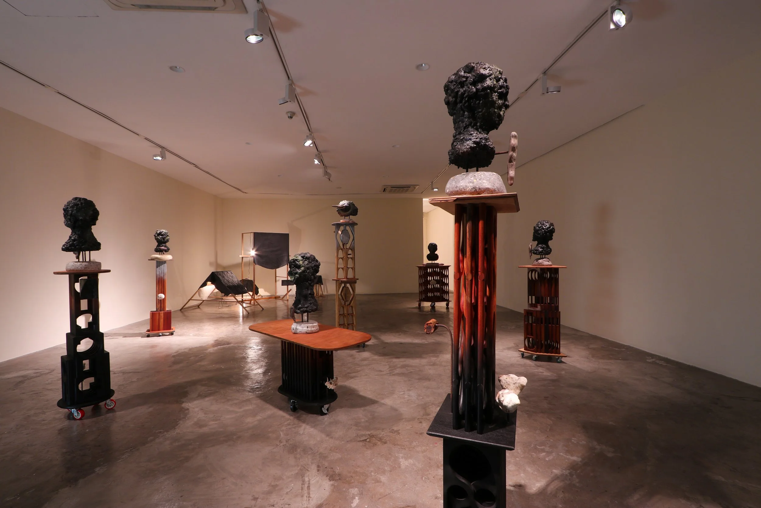 In Unusual Suns, Miguel Aquilizan and Costantino Zicarelli freely assume the roles of conjurers, but instead of spirit what appears before the viewer are the artists’ dreams of form and material. The objects, in shapes of their own invention, may very well be apparitions of a certain kind, ambiguous and implicit until recognisable figures pull one out of the wonder. The figures, although disfigured—a plaster bust or fiberglass arm—tether the exhibition to a world-to-be, one that might be built through the unlikely pairing of the tactical and the mystical. Such is at the intersection of the artists’ practices, a manifestation of shared tendencies: the processual collection of salvaged parts for later use, and a strong fascination for ritual. The viewer is invited to coexist.